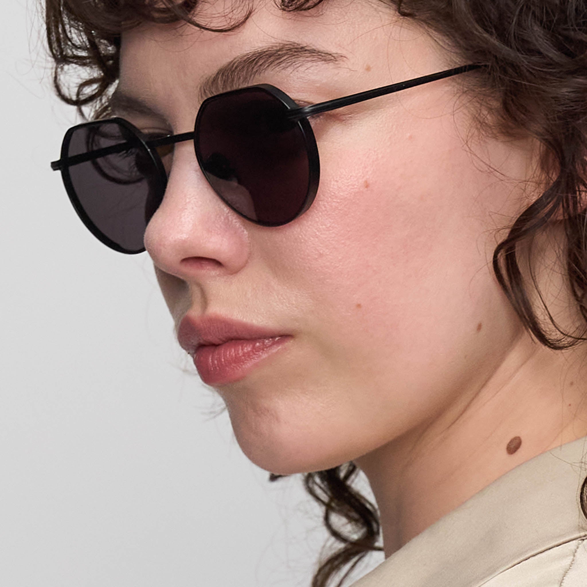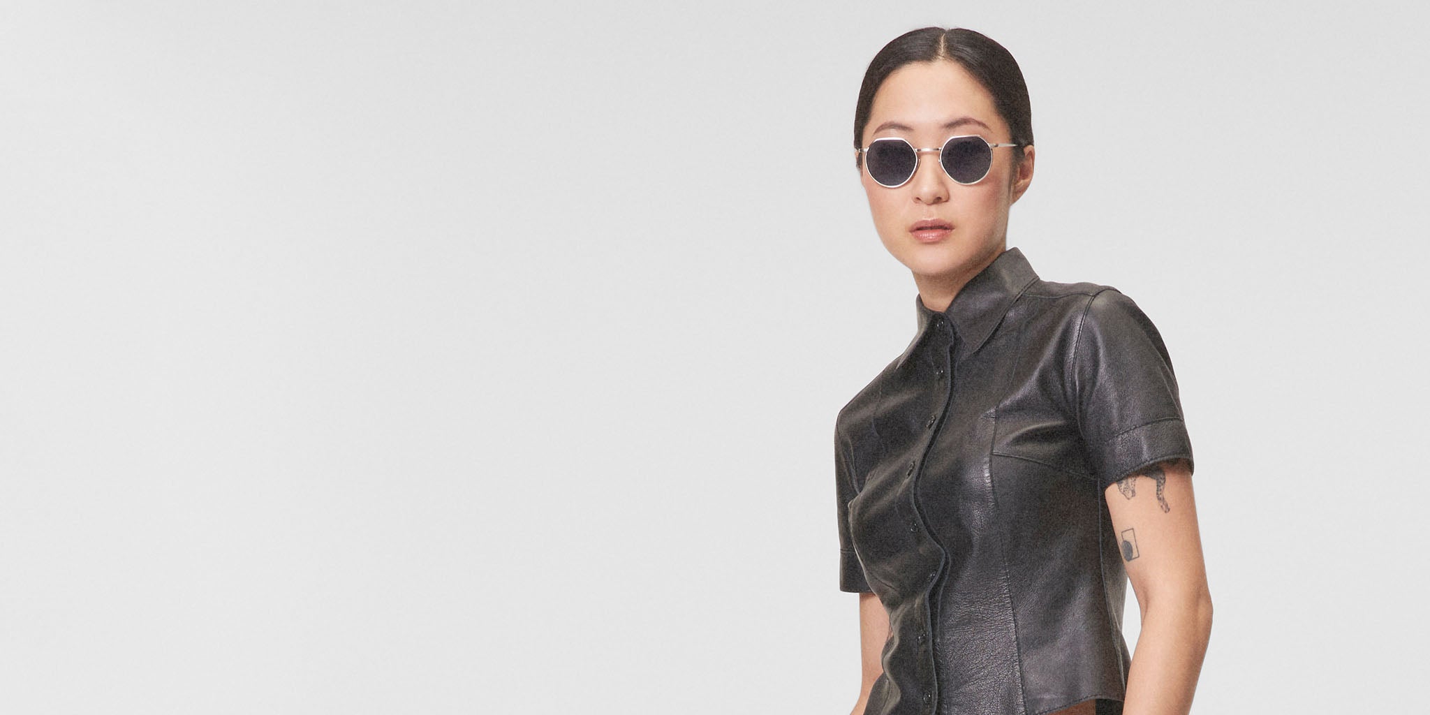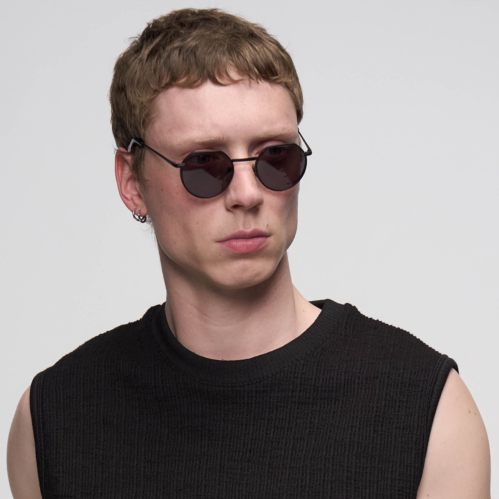 - The new Round: Gray tinted lenses with a trimmed top edge, set in a matte black stainless medium fit steel frame, create a clean, minimalist look.