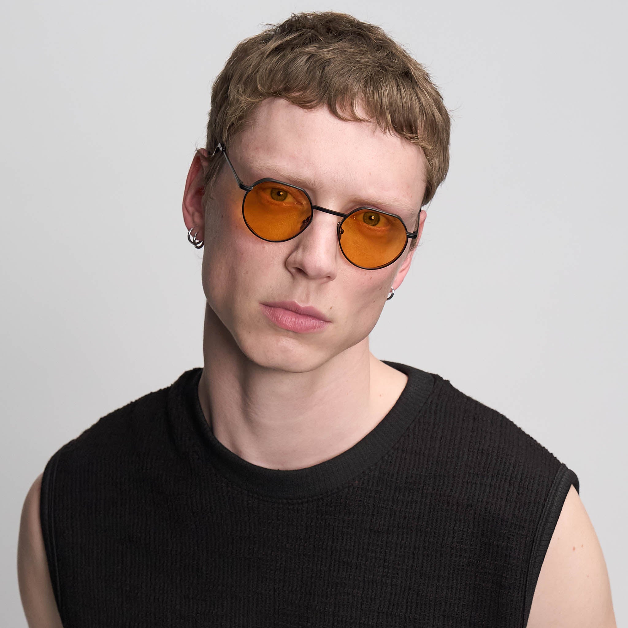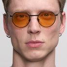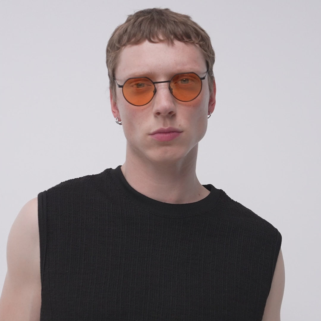 - The new Round: Orange tinted lenses with a trimmed top edge, set in a matte black stainless medium fit steel frame, create a clean, minimalist look.