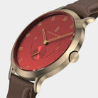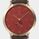 - Iconic Design: Matte red dial, 42.5 mm gold brushed case with an inset crown, and an interchangeable leather strap—where style meets functionality.