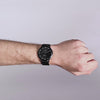 - Ikonisches Design: Schwarz lackiertes Zifferblatt, schwarzes, 42,5 mm Gehäuse mit eingelassener Krone und Metal-Wechselarmband - hier trifft Stil auf Funktionalität.