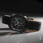 • Hinreißend unaufdringlich: Das komplett schwarze Zifferblatt mit dezenter, seidiger Struktur und eingravierten Details, filigranen Zeigern und kleinen Superluminova-Elementen, mit Anzeigen für Datum und Wochentag, hat eine gewisse Komplexität, und ist doch ganz mühelos ablesbar.